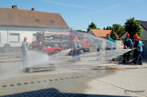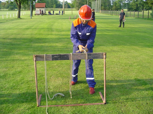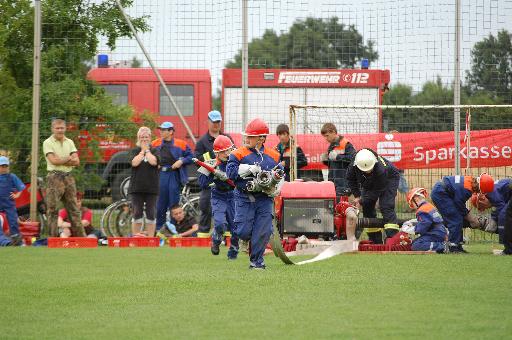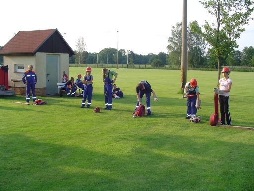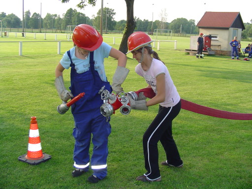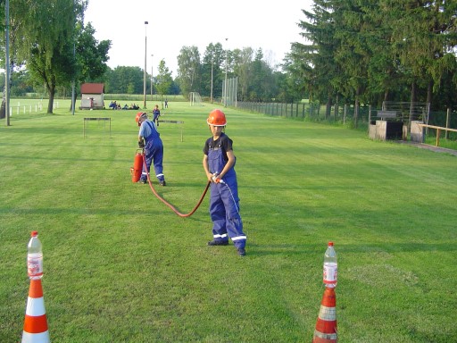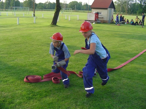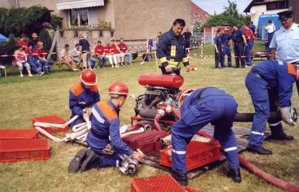 | Vorbereitung für Löschangriff beim Gemeindeausscheid der Jugendfeuerwehren